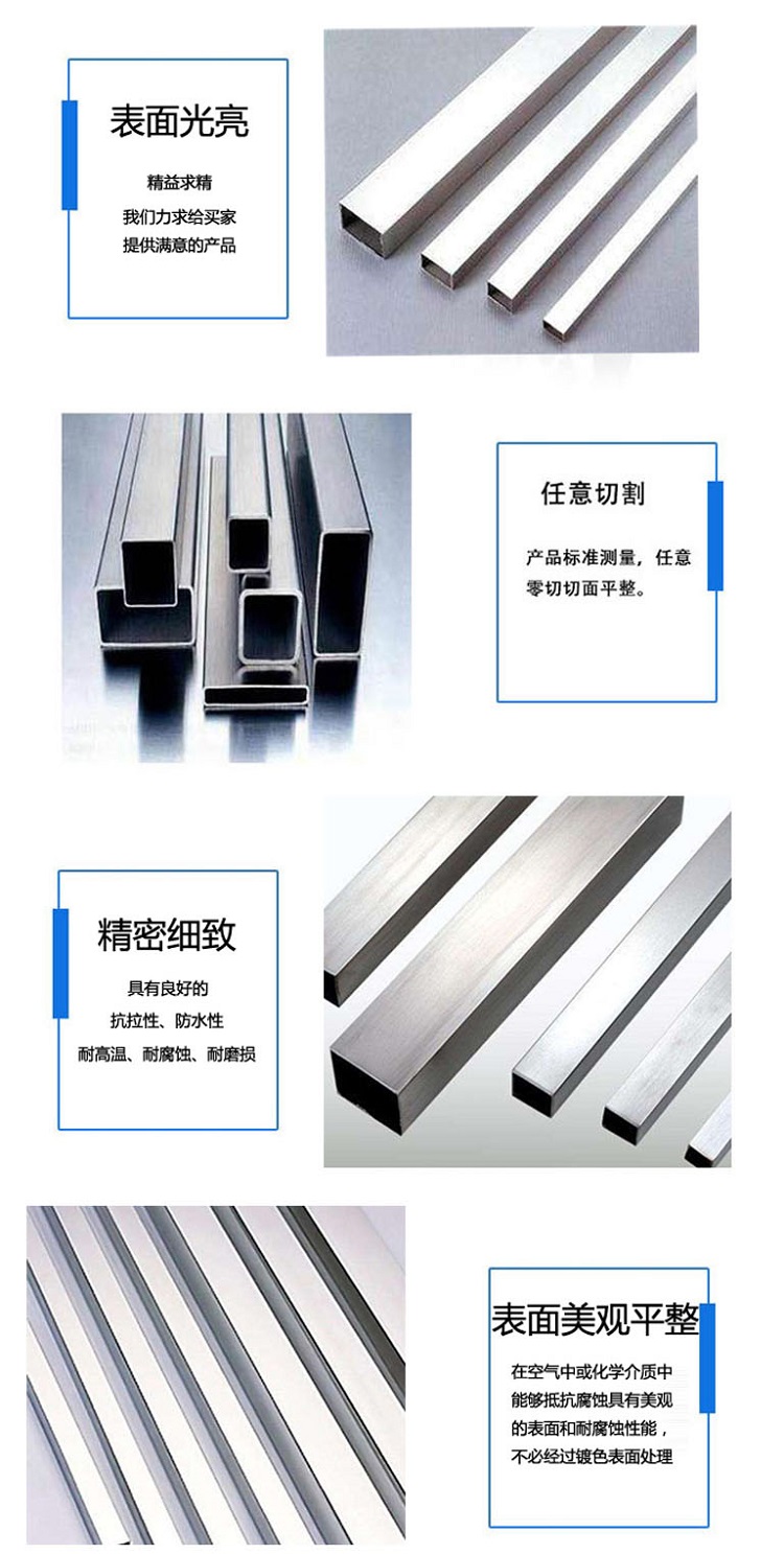 不銹鋼矩管是一種中空的長條鋼材截面是長方形,所以叫做矩形管,大量用作腳手架框架結構,如石油、天燃氣、水、煤氣、蒸氣等,另外,在搞彎、抗扭強度相同時,重量較輕,所以也廣泛用于制造機械零件和工程結構。也常用作生產各種常規武器、槍管、炮彈等。